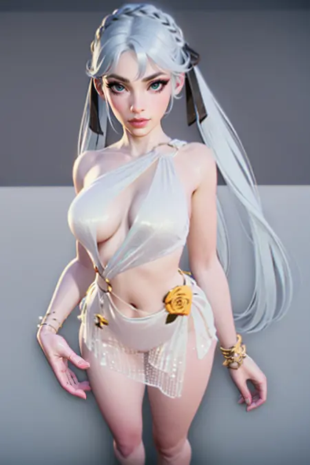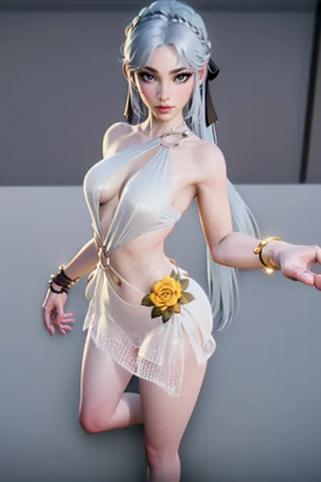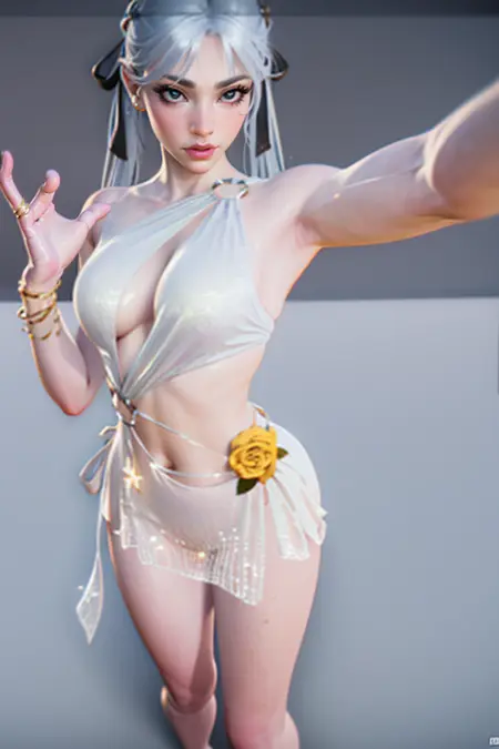 트리거 단어(Trigger word): ji yingying,o-ring,bare shoulders,cleavage,strappy heels,white shoes,hair ribbon,ribbon,jewelry,bracelet,bikini,yellow flower,