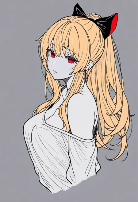 V1raGB, 빨간 눈, 금발, 긴 머리, 파니테일, 검은 리본