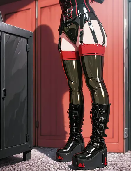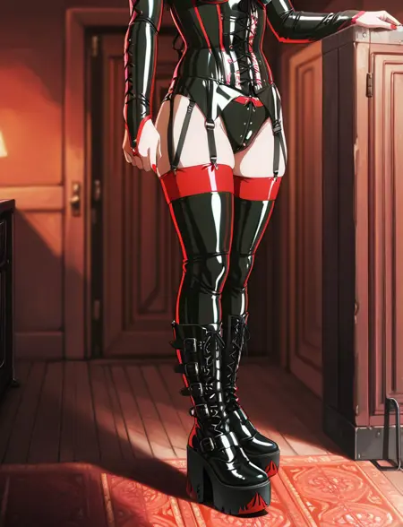 latex,latex outfit, black latex, red latex accents, fetish fashion,