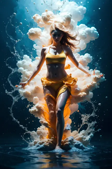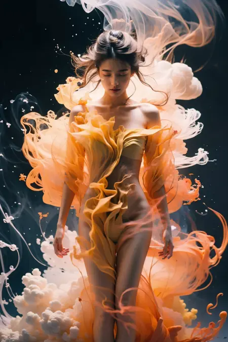 2. prompt에 "Smoke" 또는 "cloud" 또는 "water" 또는 "liquid" 또는 "fire" 등을 추가하면 서로 다른 형태가 생성됩니다. 물론 모두 함께 사용할 수도 있습니다.