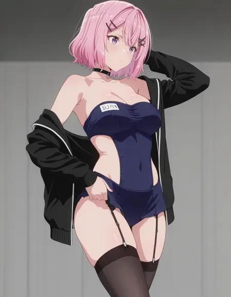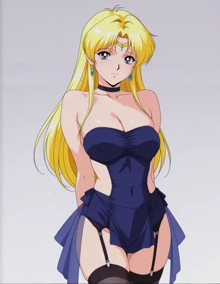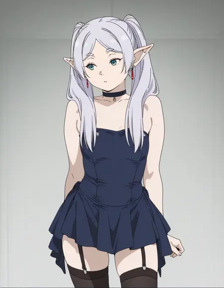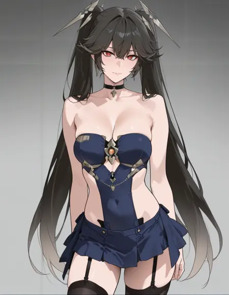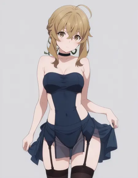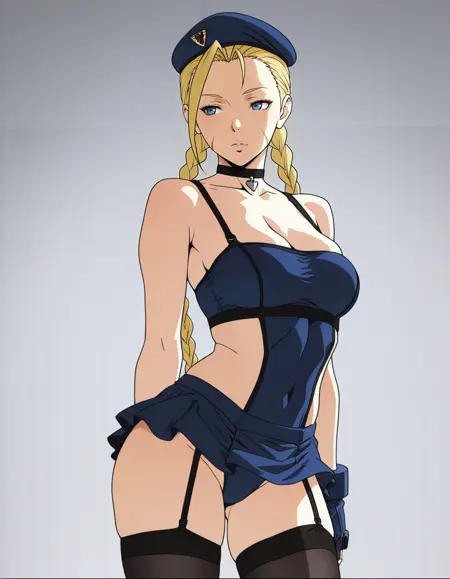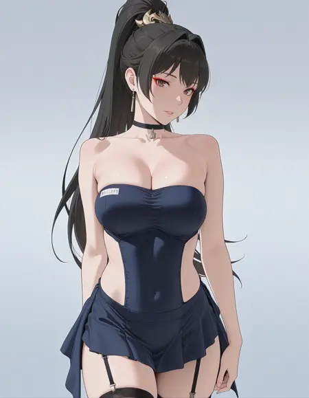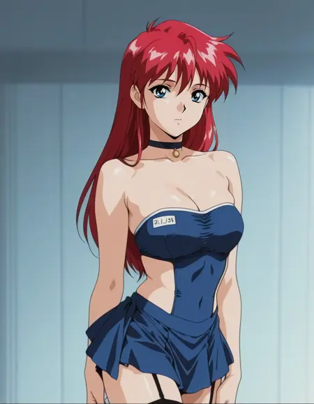 A mini sized LoRA model with sexy blue outfit worn by BJ.