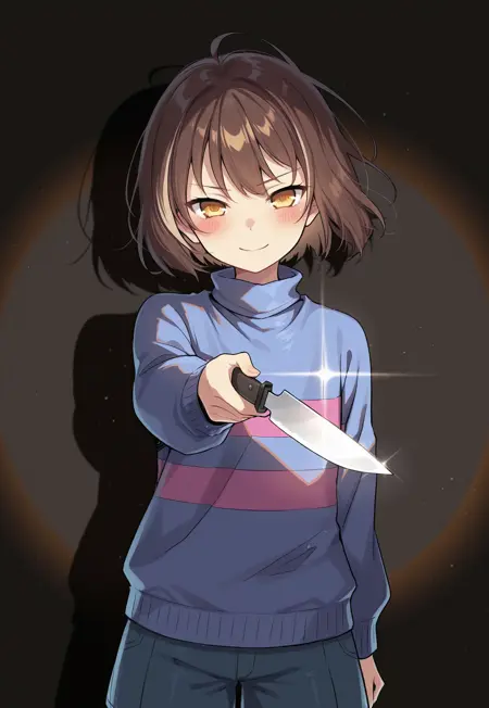 friskxl111_Illustrious, frisk, brown hair, short hair, yellow eyes,