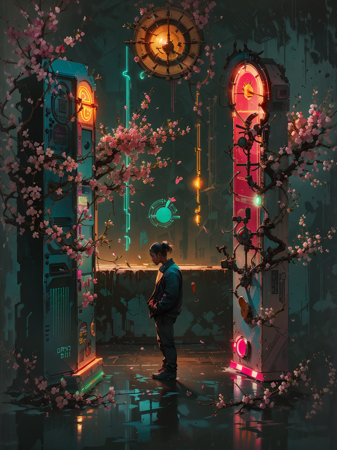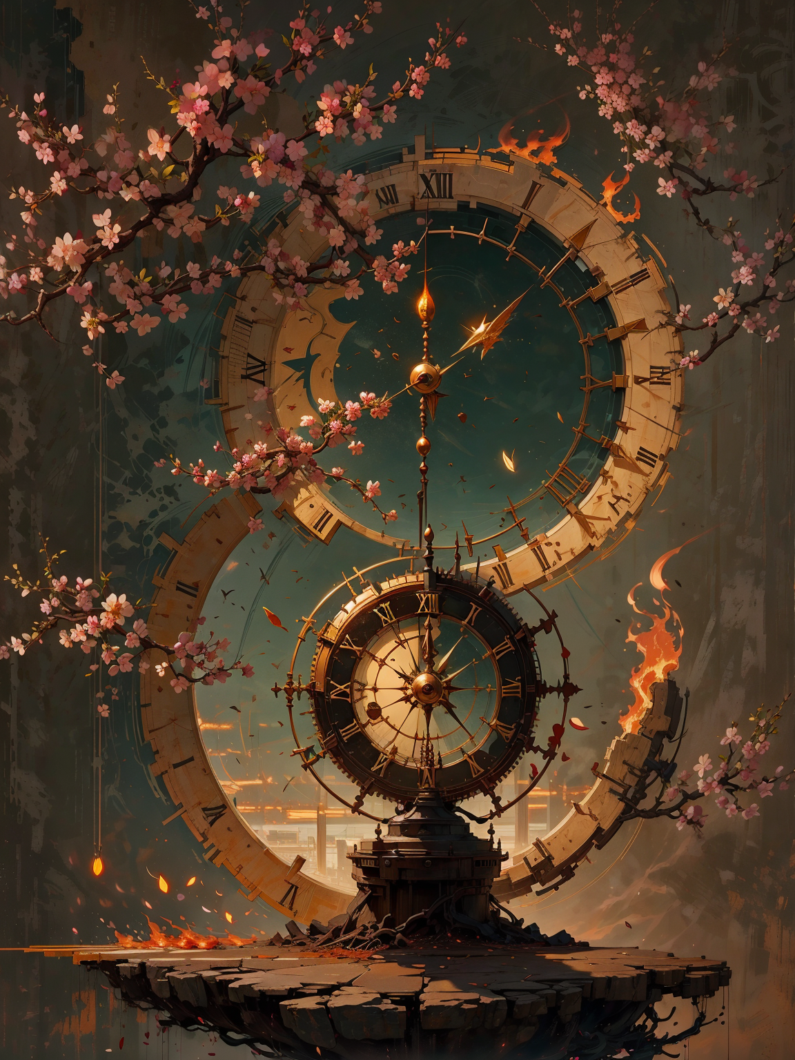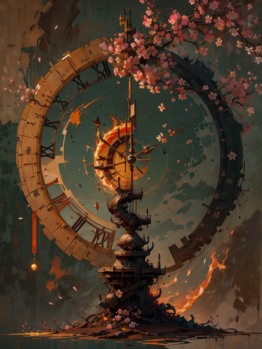 선택 태그 - 풍경, 하늘, 체리 블로섬, 붉은 달, 오렌지 톤