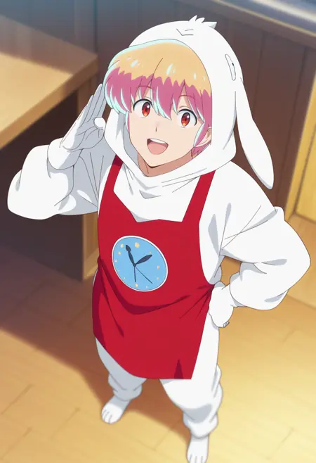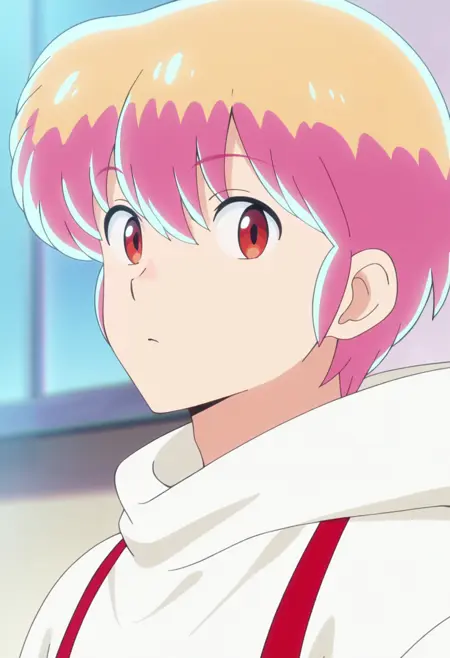 inaba, red eyes, blonde hair, pink hair, two-tone hair, short hair