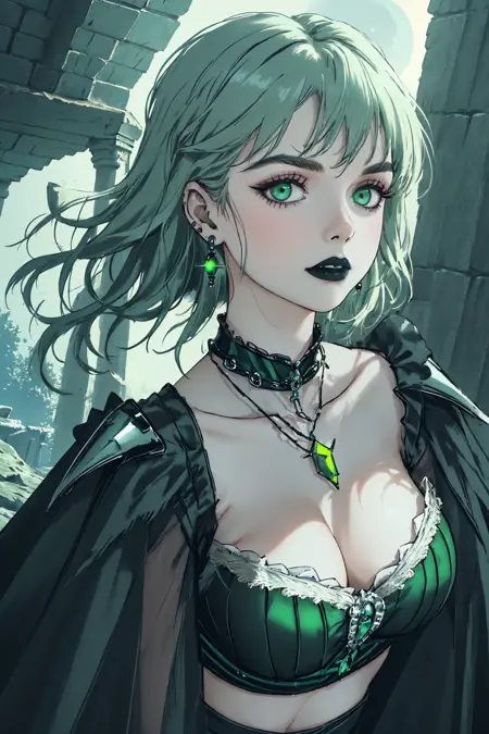 이 LoRA는 다음의 주요 특징을 가진 커스텀 고트 스타일의 얼굴을 생성합니다: