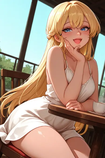 파란 눈, 긴 머리, 금발, 눈 사이의 머리카락, 매우 긴 머리, 프랑스식 땋은 머리, 교차한 앞머리,