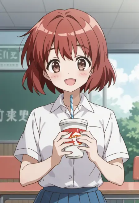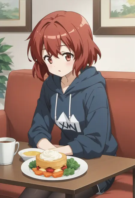 트리거 단어: inokuma youko, 빨간 머리, 단발, 갈색 눈