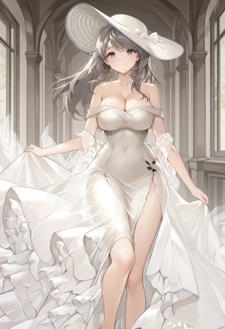 white dress,white headwear,off shoulder,sleeveless,collarbone,