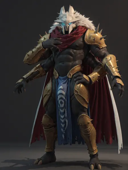 Fallen Captain from the video game series destiny. Pose can be stiff if not specified by tags, and also likes to generate 6 arms instead of four. Higher model strength tend to have more muted colors, lower strength still works decently well when you want more vibrant colors, but the helmet doesn't always look as good.