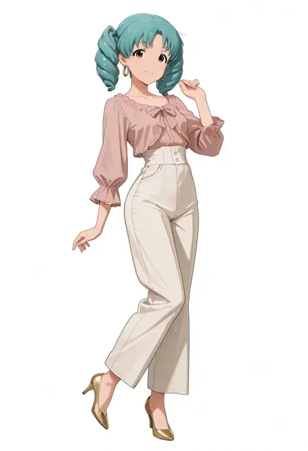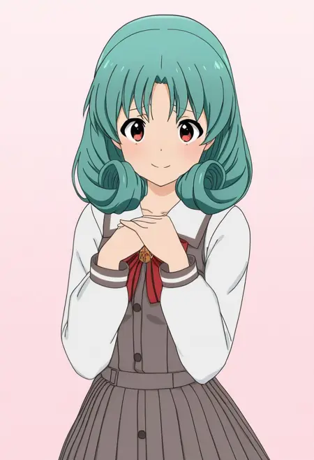 キーワード「drill hair」を追加するとSHSヘアスタイルが発動します。効果がない場合は、プロンプトの重みを増やしてみてください。