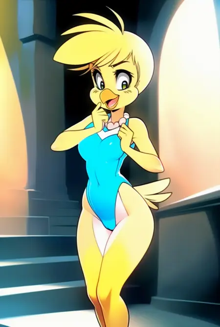 강화 태그: 조류,노란 피부,파란 드레스,**목걸이,