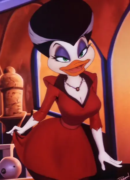 強化タグ:duck,白い肌,赤いドレス,黒い髪