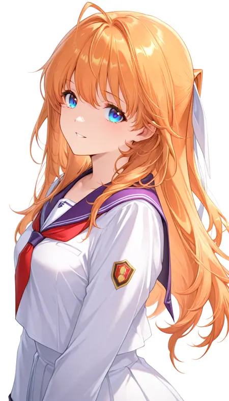 基本 : TT_hazum1, blue eyes, Orange Blonde Hair, long hair, hair ribbon, antena hair
