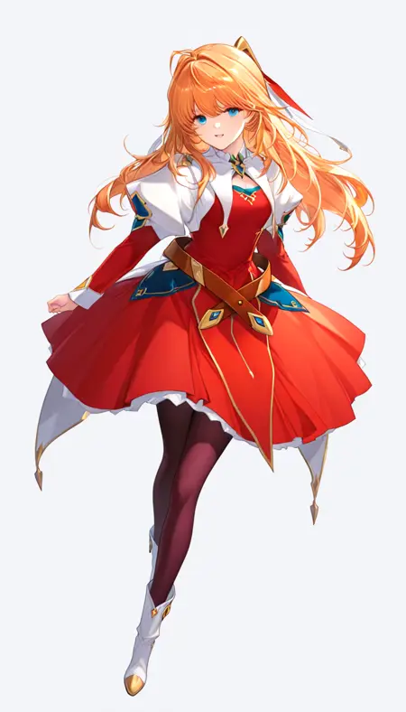 通常時服 : red dress, Long sleeves, Leather belt, pantyhose, white boots ,