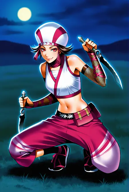 | 학습된 단어 | sw, 1girl, solo, short hair, black hair, red eyes, white and red hat, navel, bare shoulders, full body, pink pants, midriff, white crop top, black socks, sandals, knife, fishnets, bridal gauntlets, dual wielding, sarashi, ninja, tube top, dagger, reverse grip, kunai, capri pants, brown hair, black detached sleeves, lips, 복사됨! SW2, 1girl, solo, brown hair, gloves, cleavage, brown eyes, shorts, elbow gloves, midriff, armpits, scarf, side ponytail, crop top, short shorts, dual wielding, white shorts, ninja, dagger, pink thighhighs, pink scarf, long hair, ribbon, hair ribbon, :d, thigh strap, sandals, red scarf 복사됨! sw3, 1girl, solo, long hair, looking at viewer, smile, open mouth, brown hair, hair ornament, red eyes, ribbon, brown eyes, full body, hair ribbon, boots, shorts, wide sleeves, holding weapon, armor, side ponytail, thigh strap, capelet, fishnets, dual wielding, knee pads, kunai, braid 복사됨! |