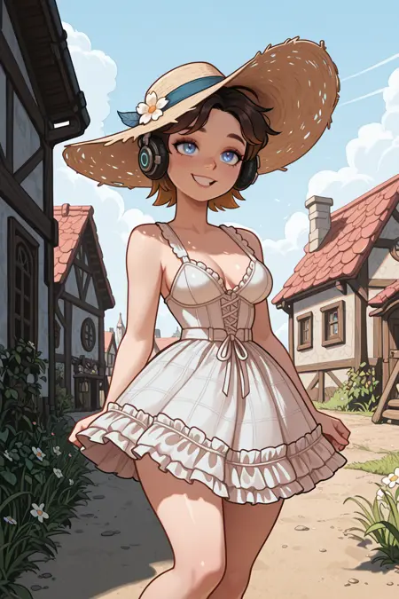 普通发型触发词:Ultluna,棕色头发,短发,渐变发色,蓝眼睛,耳机,背心,牛仔短裤