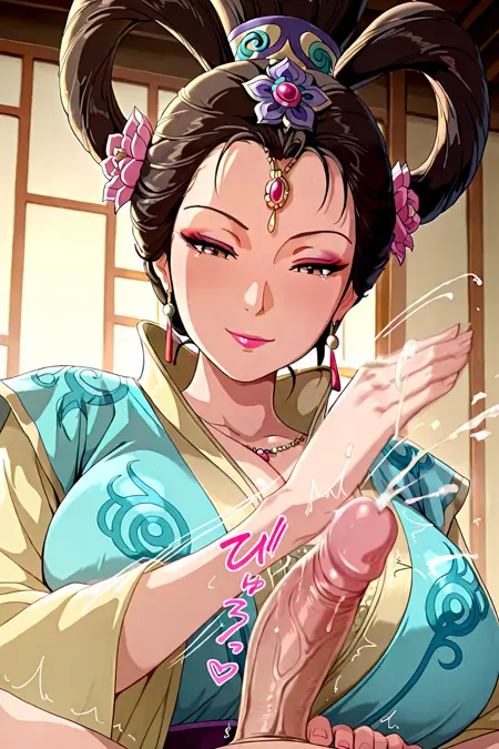 sunxiaomei, hair rings, hair bun, forehead jewel, hair ornament, earrings, jewelry, hair flower, makeup, lipstick, hanfu