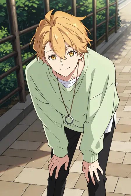 Banri, banri naoe, blonde hair, yellow eyes, hair between eyes, short hair