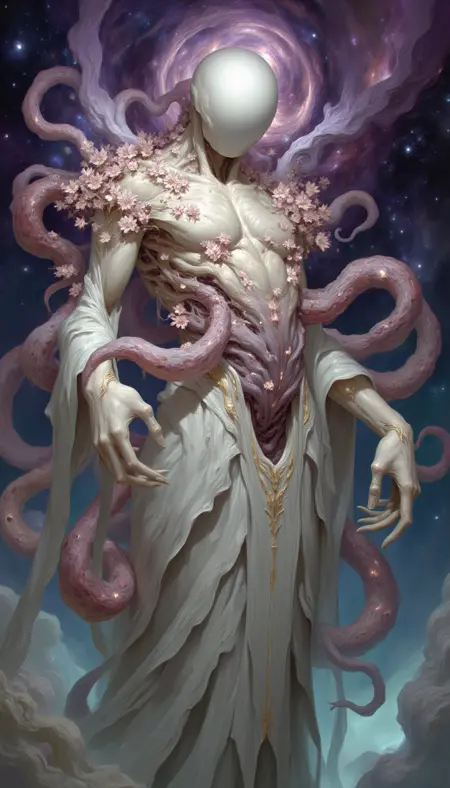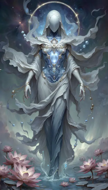 The Concept is 'Faceless Gods'. Otherworldly deities, both terrifying and divine, born from the depths of our collective unconscious, dreams, and nightmares.