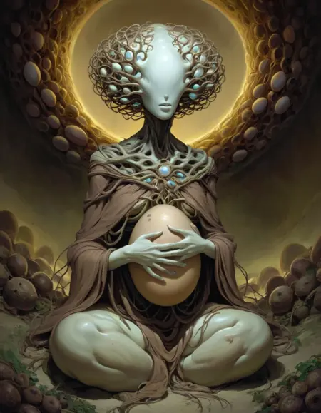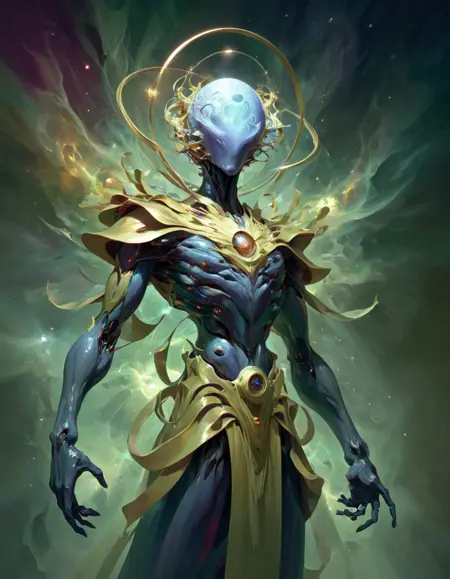The Concept is 'Faceless Gods'. Otherworldly deities, both terrifying and divine, born from the depths of our collective unconscious, dreams, and nightmares.