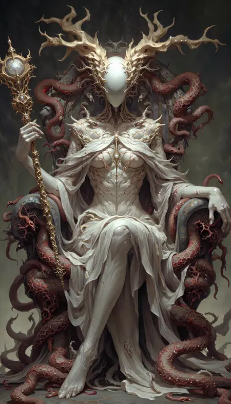 이 아이디어는 오랫동안 저와 함께해 왔습니다.이 파나테온(LoRA)은 개념과 스타일을 모두 융합합니다.개념은 '얼굴 없는 신들'입니다. 우리 집단 무의식, 꿈, 그리고 악몽의 깊이에서 태어난, 무서우면서도 신성한 이세계의 신들입니다.스타일은 다크 판타지를 바로크와 초현실주의와 결합합니다.피터 모흐르바커, H.R. 지거, 이고르 키에릴룩 및 웨인 바로우의 작품에 크게 영감을 받았습니다.