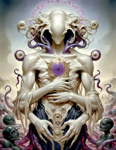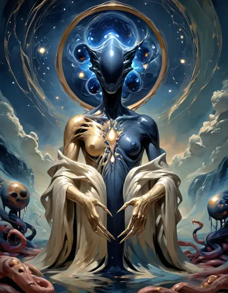 The Concept is 'Faceless Gods'. Otherworldly deities, both terrifying and divine, born from the depths of our collective unconscious, dreams, and nightmares.