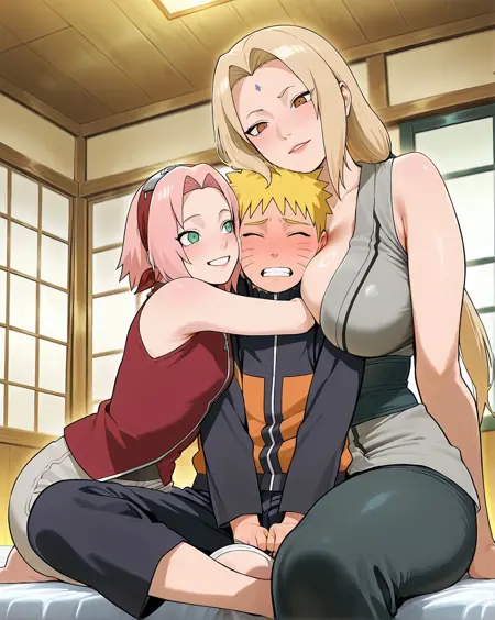 (2girsl:1.2), ヘテロ, 1boy, 乳房、後ろから抱きしめる,