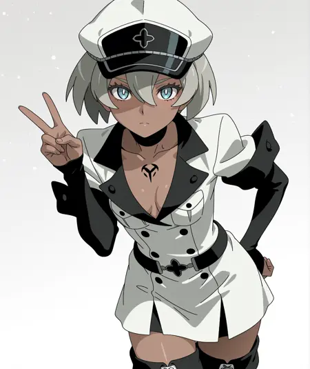long sleeves, gloves, dress, short sleeves, choker, belt, elbow gloves, white dress, uniform, black choker, military, military uniform,