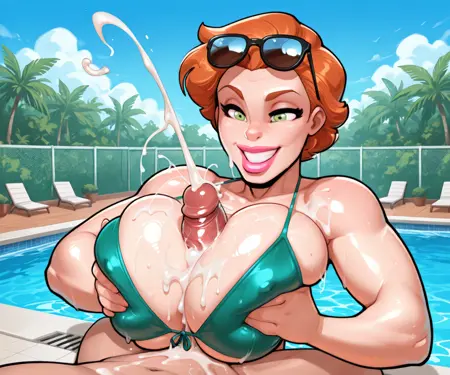 주황색 머리, 짧은 머리, 녹색 눈, 분홍색 입술