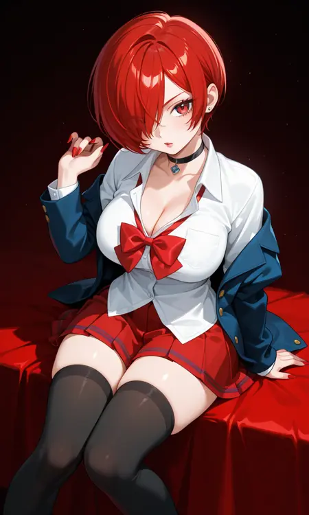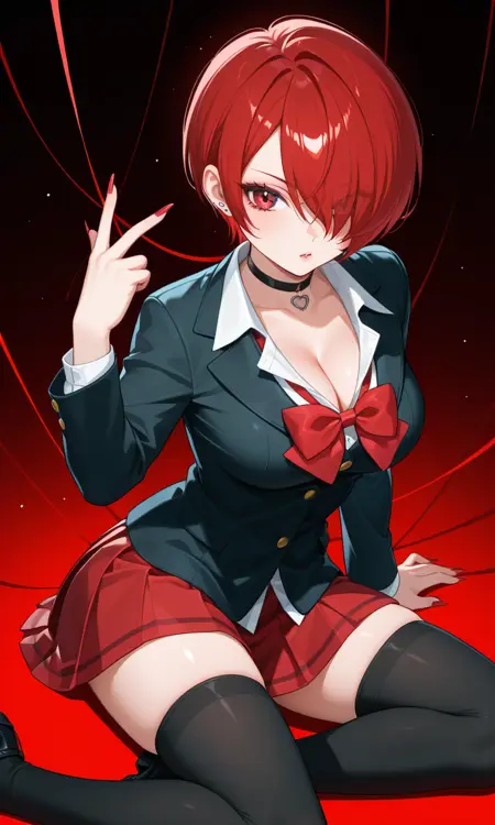 | 训练词汇 | Miss X (mugen Character), 1girl, solo, short hair, red eyes, red hair, nail polish, hair over one eye, fingernail, long fingernails, sharp fingernails, breasts, large breasts, nail polish,已复制! Skirt, jacket, black jacket, school uniform, red skirt, shirt, cleavage, pleated skirt, choker, bow, miniskirt, thighhighs, cleavage, black thighhighs, zettai ryouiki, red bow, long sleeves, socks, black socks, kneehighs, black choker,已复制! Shirt, gloves, navel, jacket, black gloves, pants, belt, midriff, fingerless gloves, black pants, shoes, white shoes, black jacket, open jacket, shite shirt, yellow belt, headband, white headband, choker, black choker, print shirt, open clothes,已复制! Serafuku, neckerchief, mask, mouth mask, purple Serafuku, skirt, long skirt, purple skirt, school uniform, pleated skirt, delinquent, shirt, long sleeves,已复制! |