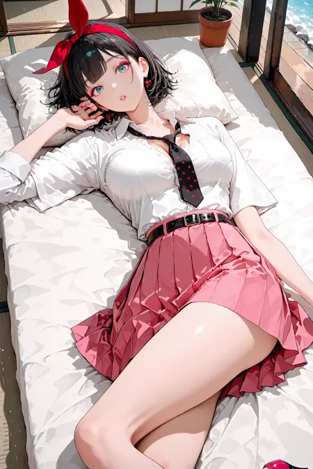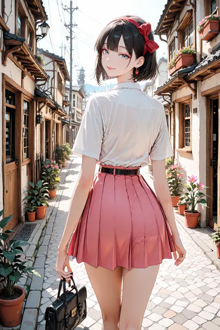 일관되게 분홍 치마를 원한다면 "pink skirt"라는 프롬프트도 추가하는 것이 좋습니다. 그렇지 않으면 폴리의 눈색과 맞추어 청록색으로 변하는 경향이 있기 때문입니다.
