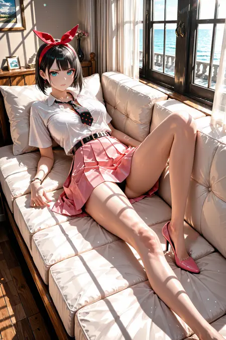 如果希望 consistently 保持粉色裙子的效果,建议在提示中加入“pink skirt”,因为否则它有时会趋向于青色,以匹配她的眼睛颜色。