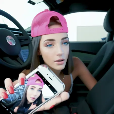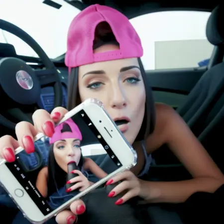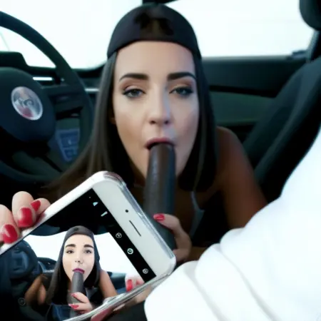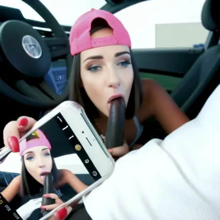 lora:phbjcrsc:1, phbjcrsc, 1girl, car, pov, phone, baseball cap, fellatio,