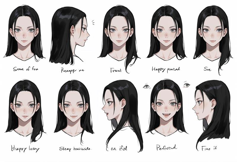 外貌: 1个女孩,绿色眼睛,灰色眼睛,黑色眼睛,黑发,长发