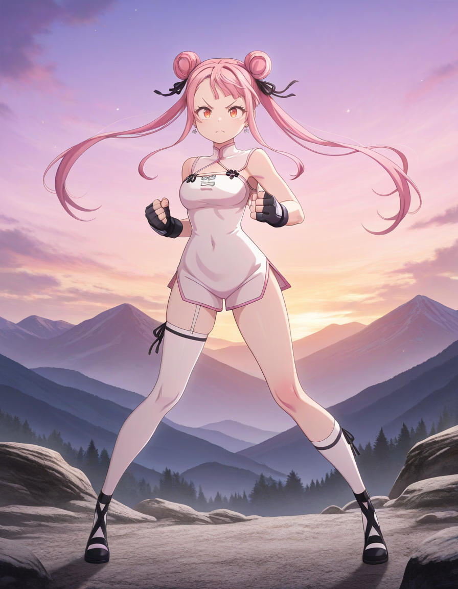<lora:tao_yuifa-dainanaoji_s2-ixl-anime-soralz:1>, 陶裕发(第七奥姬),长发,粉发,双发髻,双马尾,发带,鬓发,不对称刘海,橙色眼睛,耳环