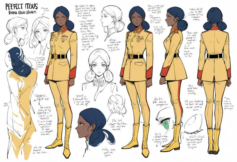 Zeon Unifrom: long hair,uniform,military,military uniform,jacket,long sleeves,belt,skirt,pants,yellow pants,boots,yellow footwear