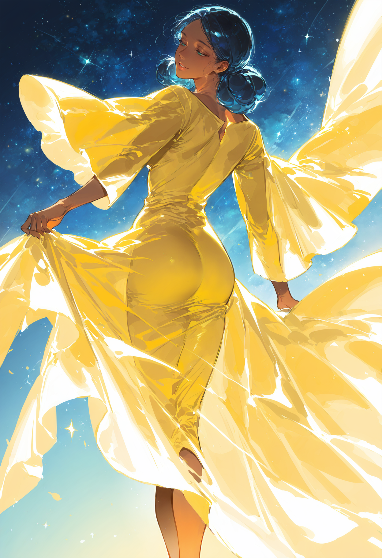 Classic Outfit: short sleeves,dress,yellow dress,shoes,yellow footwear,high heels