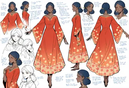 Traditional dress: makeup,eyelashes,long hair,forehead mark,facial mark,jewelry,beads,earrings,necklace,bracelet,veil,long sleeves,dress,floral print,red dress