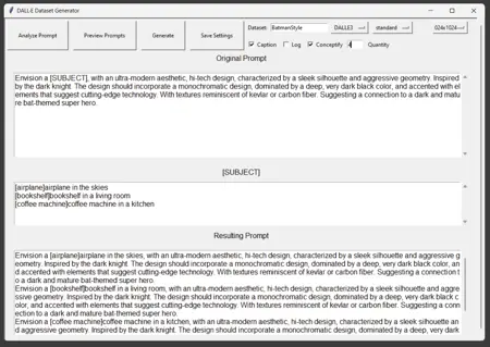 이 도구의 목적은 모델 학습을 위한 학습 데이터로 이미지를 생성하는 것입니다. DallE3는 방대한 파라미터 수를 가지므로 세부적인 프롬프트에 매우 민감하며, SD 1.5가 생성할 수 없는 이미지를 만들어낼 수 있습니다. 따라서 SD 1.5를 학습시키기 위한 스타일을 생성하는 데 유용한 도구가 될 수 있습니다.