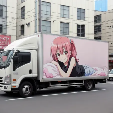 An "ad truck" is a vehicle specifically designed for advertising, short for "Advertising Truck." These trucks are often equipped with large panels on their sides and rear to display advertisements for various products, services, or events. Ad trucks are frequently used to promote music, anime characters, latest movies, and more, characterized by their vibrant and eye-catching designs. Some ad trucks are also equipped with speakers to play music or broadcast messages as they drive through city streets.