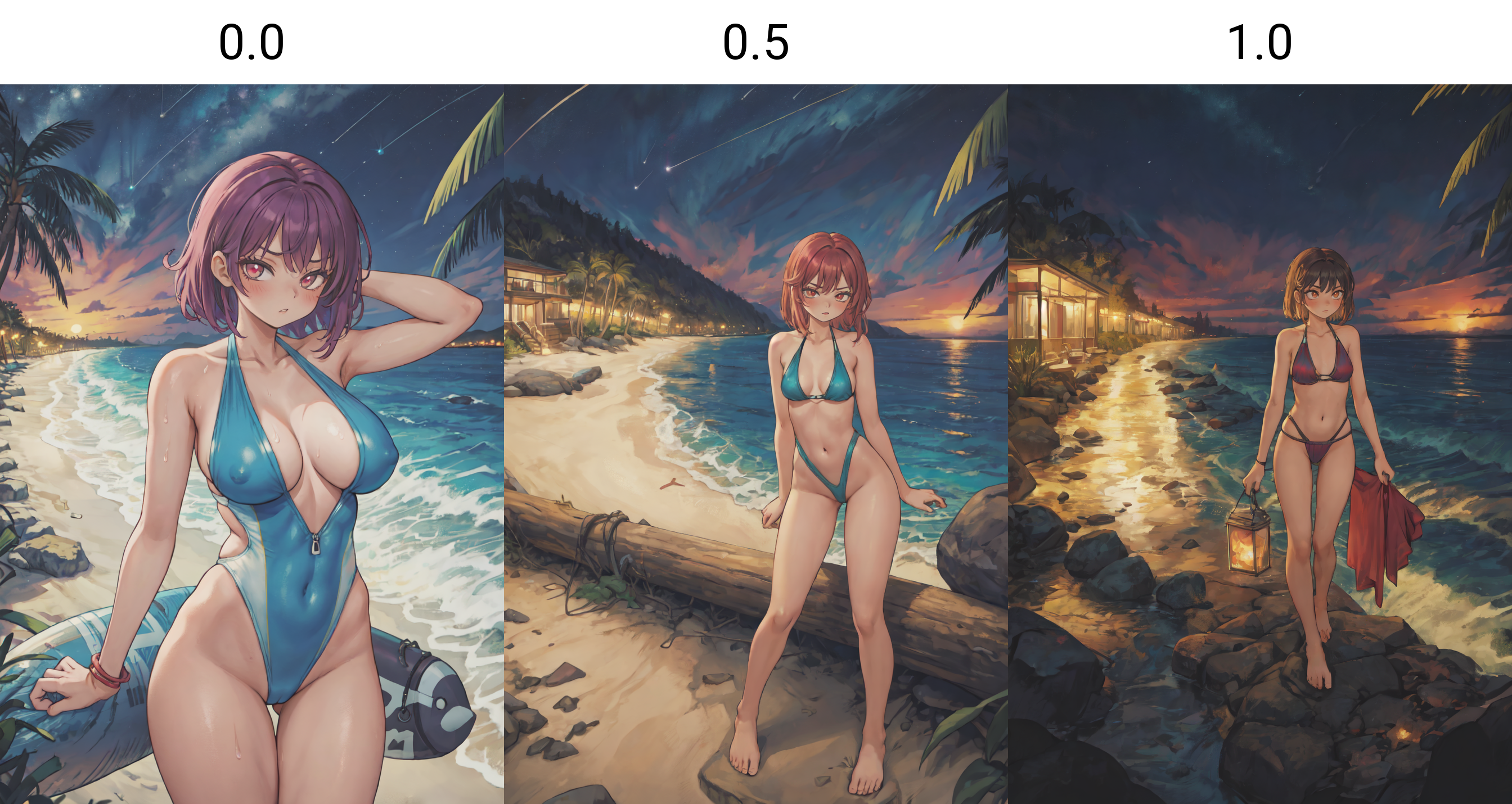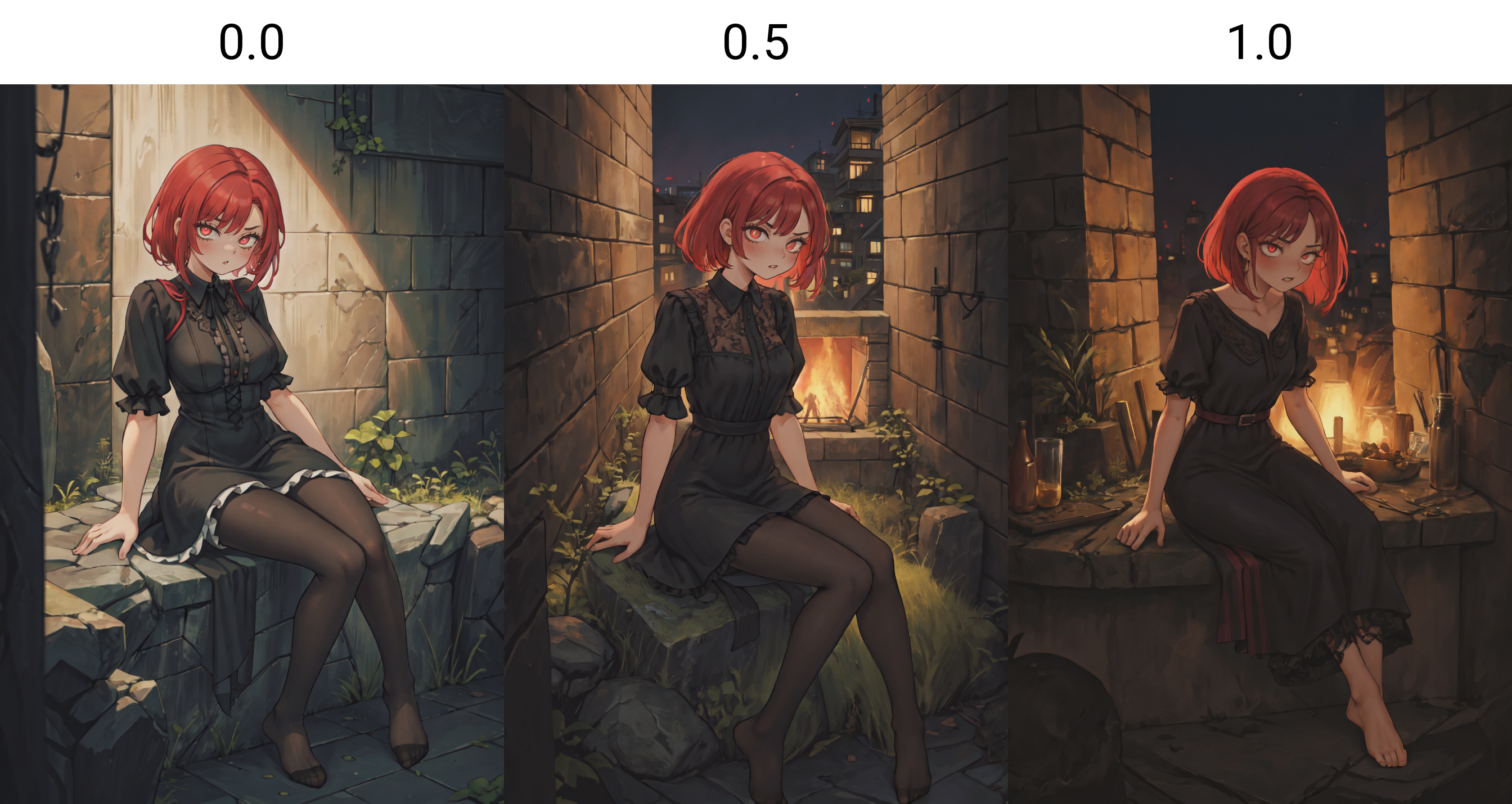 이 LORA는 "야간"이나 "어두움" 같은 프롬프트에 더 민감하게 반응하게 하며, 더욱 순수한 검은색 드레스와 옷을 만들기 쉽게 해줍니다. 또한 더 어두운 분위기를 추가합니다.