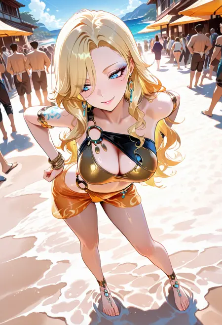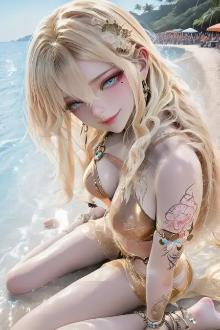 트리거 단어(Trigger word)****: matari,jewelry,cleavage,armlet,barefoot sandals (jewelry),o-ring,see-through,tattoo,sarong,