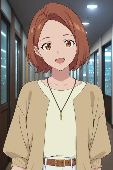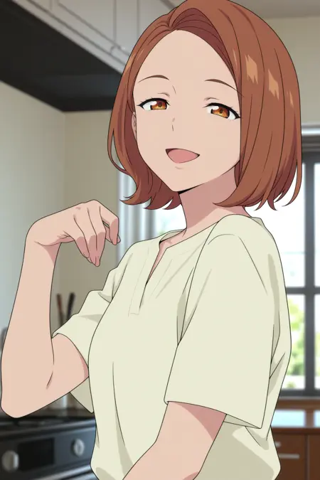 mrsasanaka, short hair, brown hair, parted bangs, brown eyes