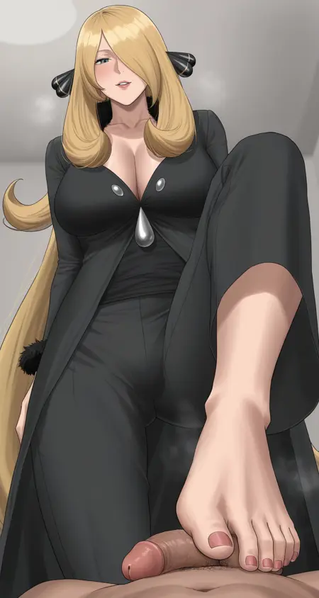 wasab artist, cynthia from pokemon, mature female, hand close-up, leg close-up
