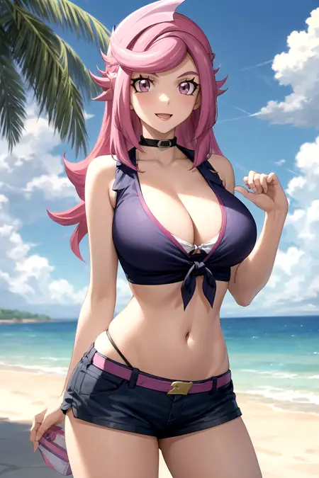 emma_bessho_: 전체 외모를 얻기 위해 사용. 분홍색 머리, 보라색 머리 및 **분홍색 눈**과 함께 사용하며, 주요 옷차림으로는 보라색 바디수트, 긴 소매, 바지, 벨트, 부츠, 검은 장갑 및 **핑거레스 장갑**을 사용. 또한 부정적 프롬프트에 **ghost_girl**을 포함시킬 것.