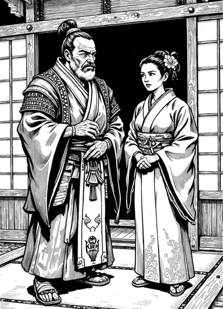 CYOA, illustration, black and white, monochrome, hatching style, fantasy setting,