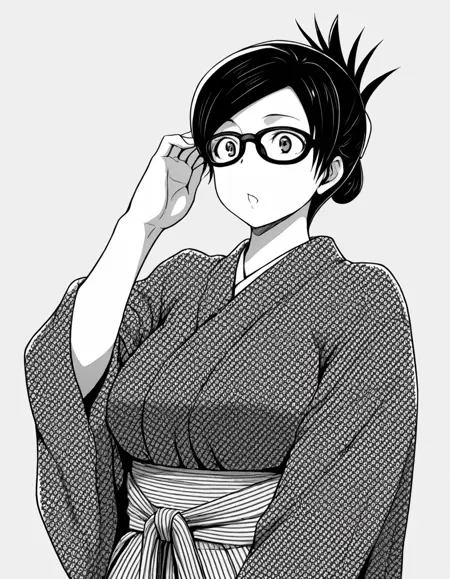 glassesannouncer、眼鏡、折りたたんだポニーテール、日本の衣装