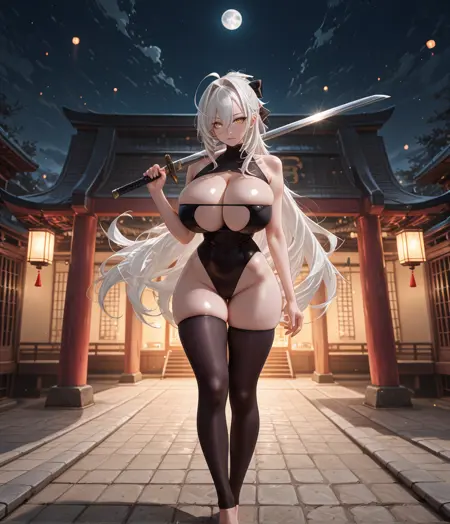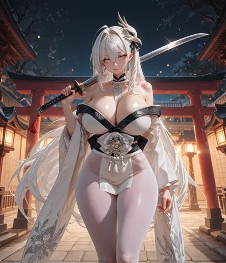 | 训练词汇 | Hakukimo, hair intakes, yellow eyes, white hair, hair between eyes, very long hair, ahoge, huge breasts, mask on head, hair ribbon, single earring, cleavage, detached collar, necktie between breasts, white kimono, off shoulder, bare shoulders, collarbone, long sleeves, wide sleeves, black trim, manaita obi, white pantyhose, platform footwear, black okobo,已复制! Hakunin, hair intakes, yellow eyes, white hair, hair between eyes, high ponytail, very long hair, ahoge, black hair bow, huge breasts, cleavage, cleavage cutout, underboob cutout, sleeveless, black leotard, highleg leotard, black thighhighs, barefoot,已复制! katana, holding katana,已复制! |