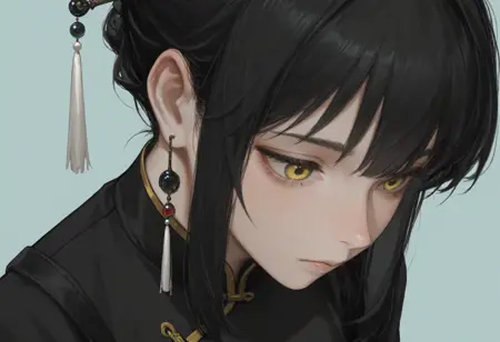 Tags タグ: Sa,black hair,sidelocks,yellow eyes,