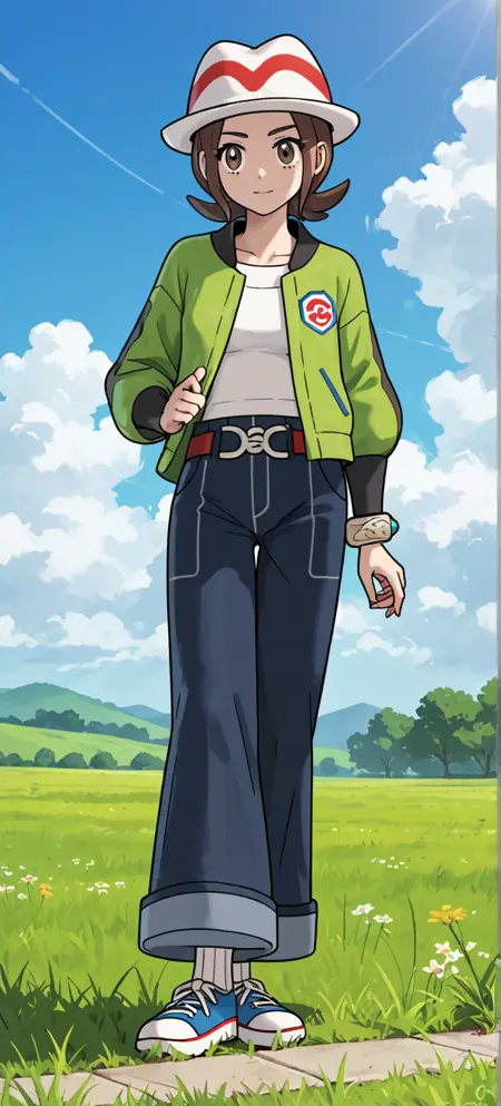 | 학습된 단어 | zaharmony, aged up, harmony \(pokemon\), brown hair, brown eyes, short hair, sidelocks, hat, white headwear, open jacket, green jacket, long sleeves, single bracelet, white shirt, blue pants, jeans, wide pants, belt, white socks, ribbed socks, shoes, multicolored footwear, blue footwear복사됨! |